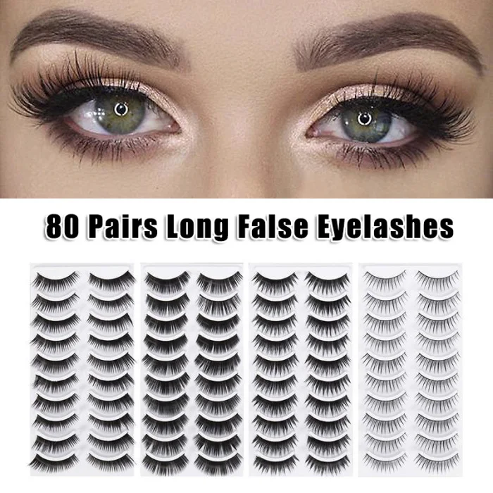 Новинка, хит продаж, 80 пар, накладные ресницы, 8 стилей, толстые длинные ресницы для глаз, красивый макияж для женщин и девочек, SMR88