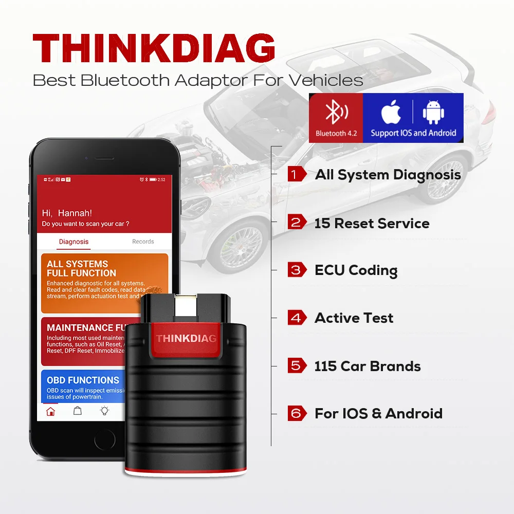 Thinkdiag может диагностировать электронную систему управления преобладающими моделями транспортных средств, охватывающих азиатские, европейские, американские и китайские. Полный спектр моделей автомобилей и полная автомобильная система диагностики делают itaprofessional автомобильный диагностический инструмент. Включает: системы ABS, системы двигателя, системы SAS, Системы TPMS, системы IMMO, системы батареи, системы обслуживания масла, системы SRS, и т. Д... Функции диагностики включают в себя: чтение DTCs, четкие DTCs, чтение datastream, испытание на приведение в действие, кодирование ECU и 15 специальных функций и т. Д.