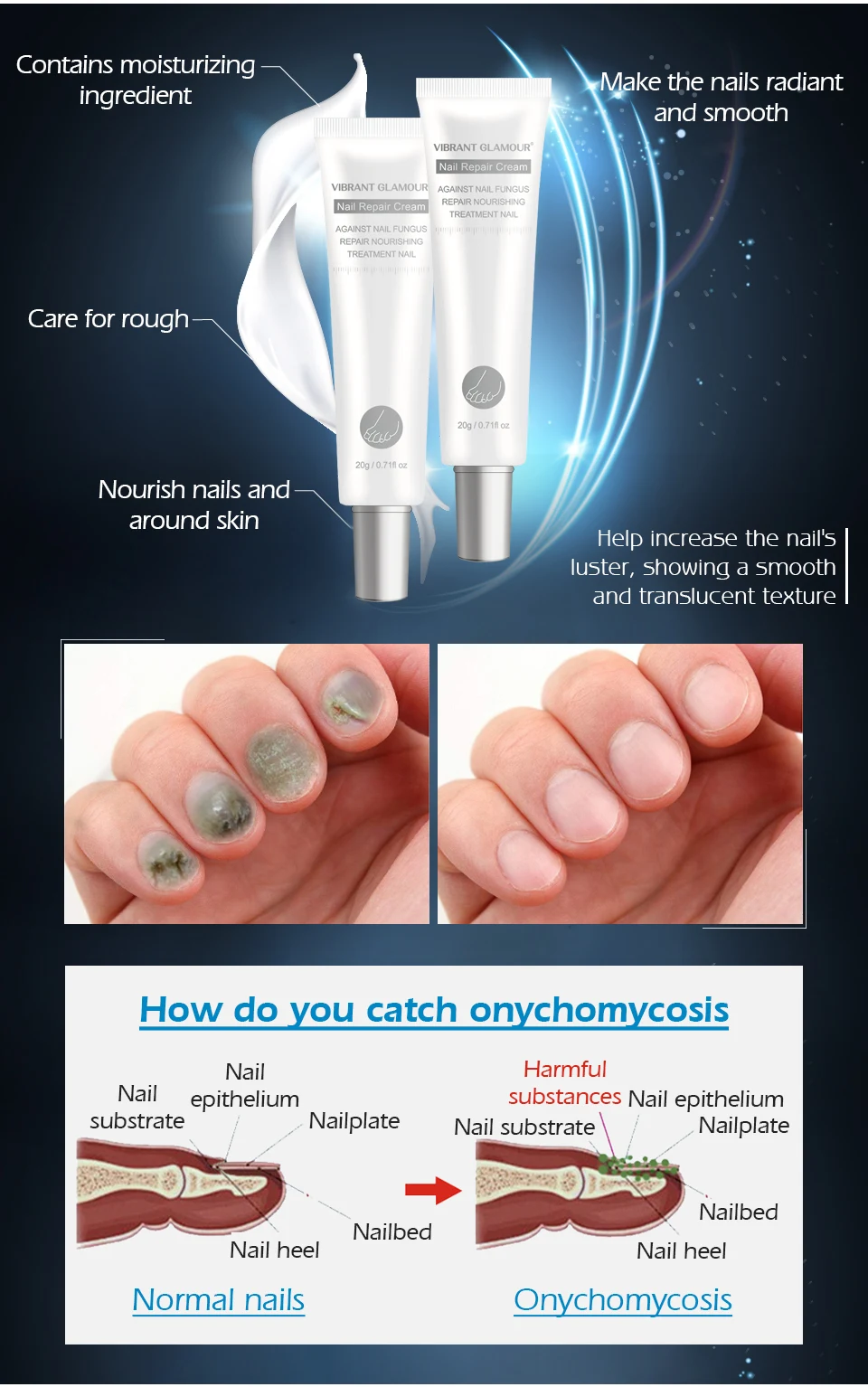 -- Натуральные ингредиенты и приятная на ощупь ткань порадует ногти -- 1. Замочите ногти в теплой воде, чтобы смягчить их 2. Тонкий их с пилочка для ногтей, свободные, полые и утолщенной деталей, и вытрите грязь и мусор 3. Нанесите необходимое количество данного товара на ноготь и окружающую кожу 4. Массаж на некоторое время, чтобы помочь поглощения. 2 раза в день