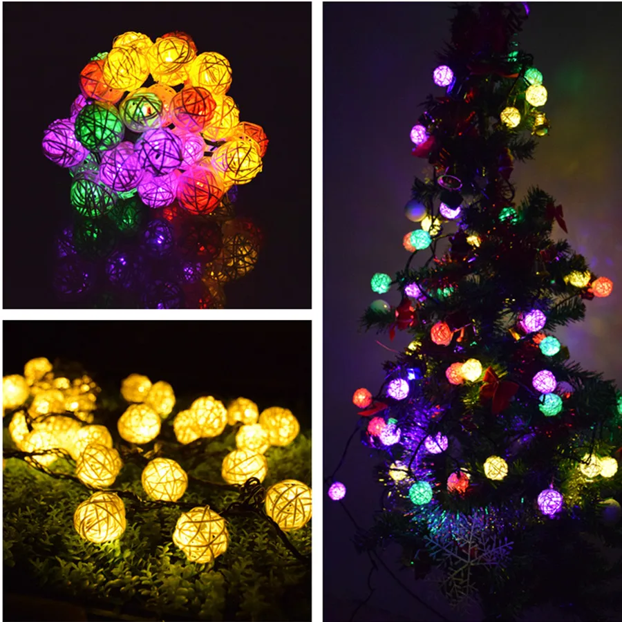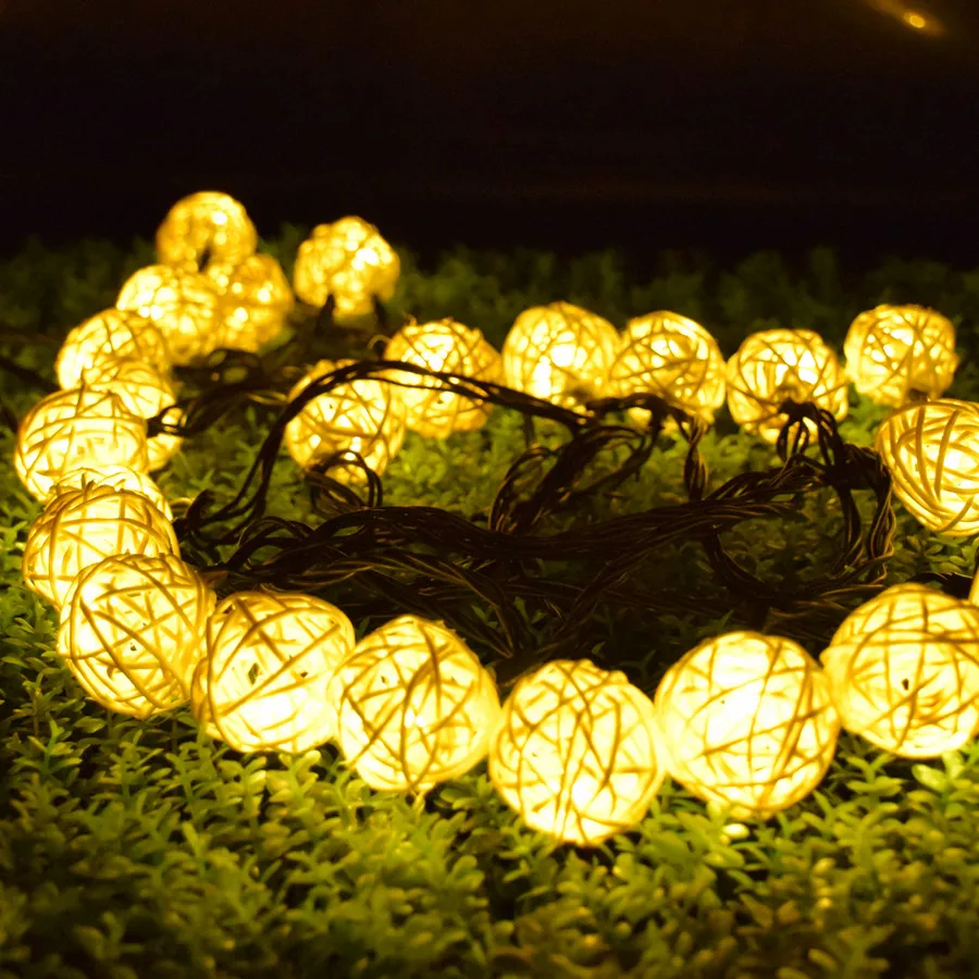 Солнечный светильник s 8 метров, ротанговый светильник, 20 светодиодов, праздничный сад, Рождественский Свадебный светильник, вечерние украшения, разные цвета