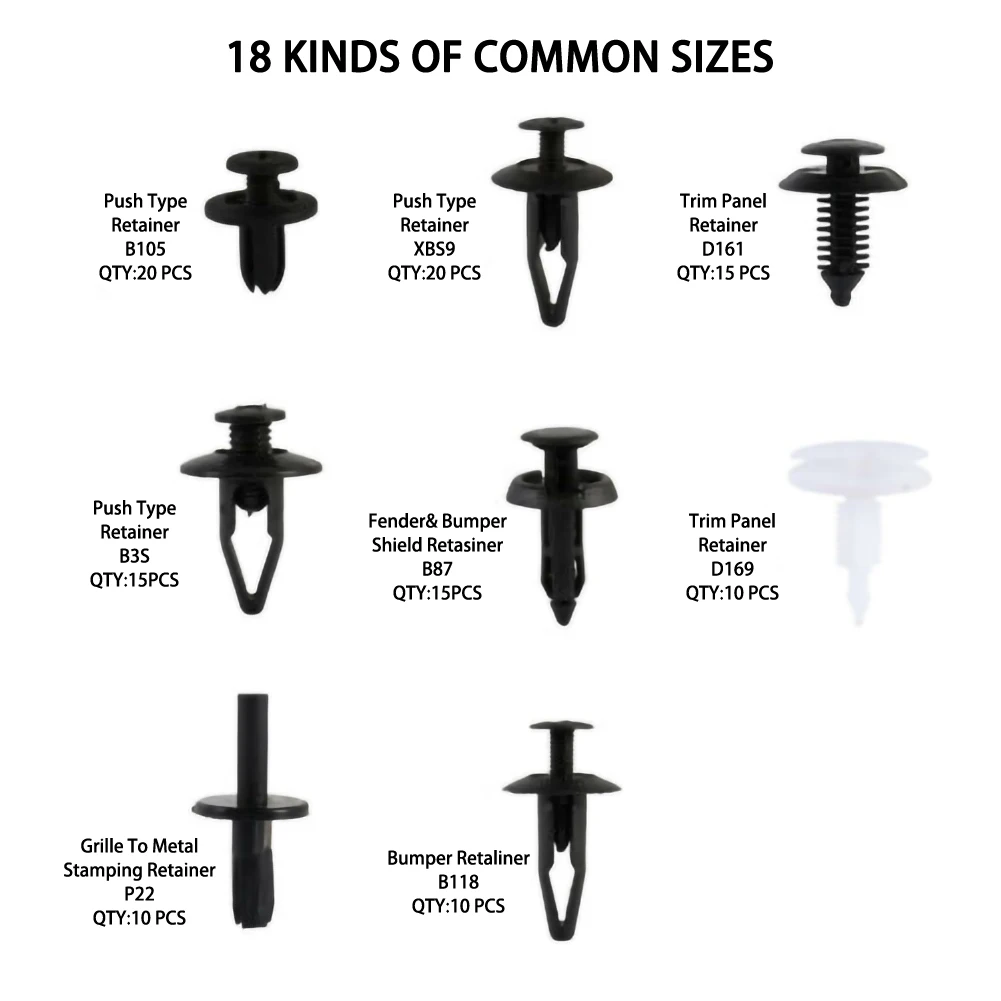 * Набор пластиковых заклепок может сэкономить ваше время, разочарование и деньги, с ним вам не нужно идти в магазин автозапчастей, чтобы искать различные крепежи. Наш продукт может вместить любой размер, который вам нужен, Вы можете DIY и наслаждаться.
