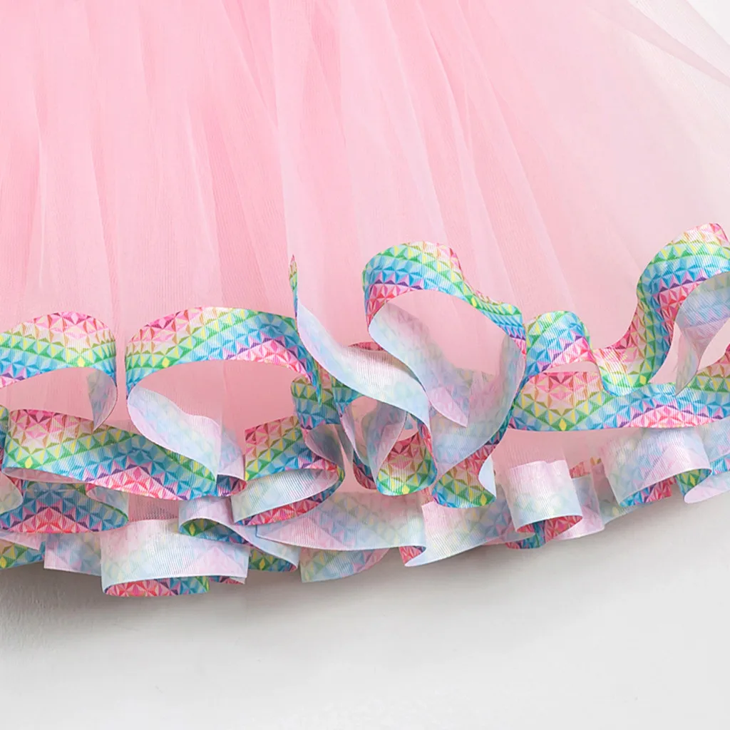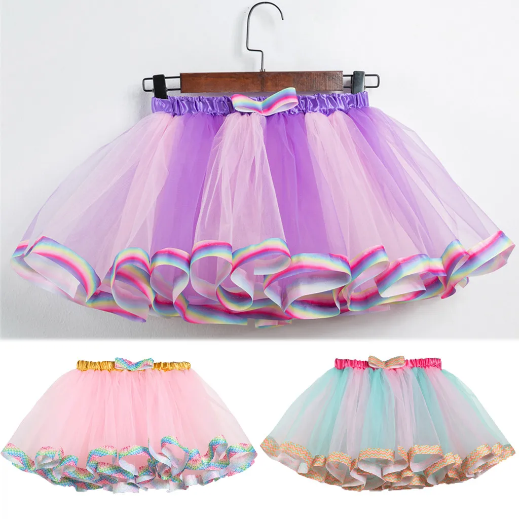 Детская юбка-пачка для девочек; Костюм; Детская юбка из фатина с бантом в Стиле Радуги; Танцевальная мини-юбка для маленьких девочек
