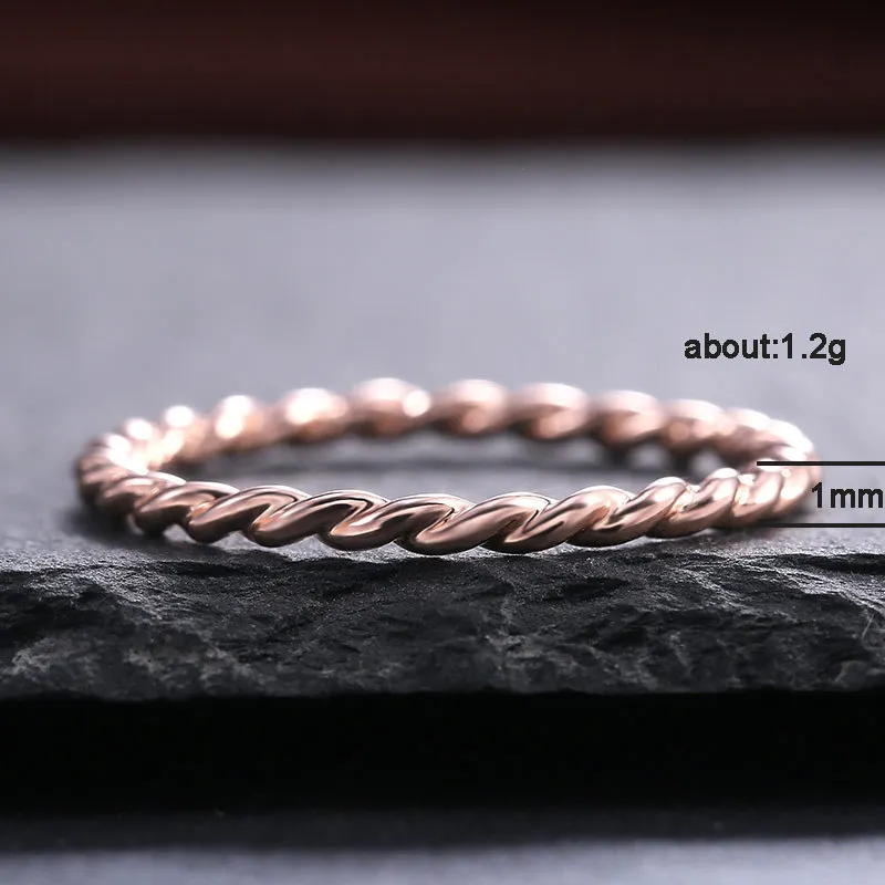 Минималистичные кольца для женщин 1 мм, тонкое кольцо из розового золота, поворотная веревка, обручальное кольцо, ювелирные аксессуары, бижутерия