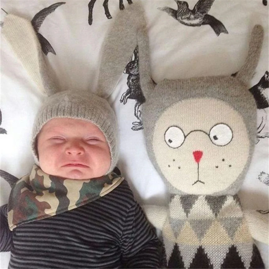 Детские Дети для мальчиков и девочек, вязаные крючком с кроличьими ушками на бини зимняя теплая шапка Кепки