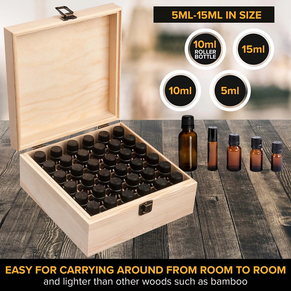 -Коробка для эфирного масла изготовлена из высококачественных сосновых деревянных материалов, красиво оформленная и отличная работа. Экологичный, стабильный и прочный!