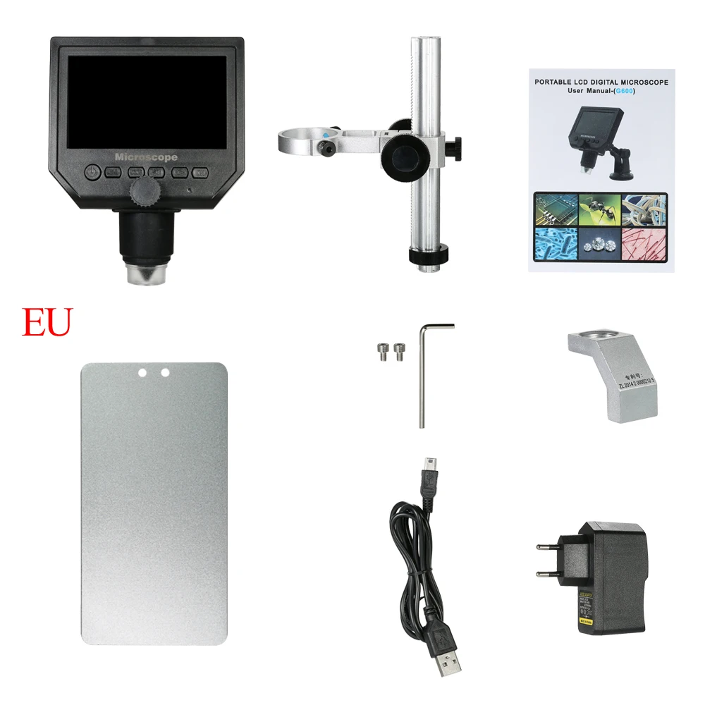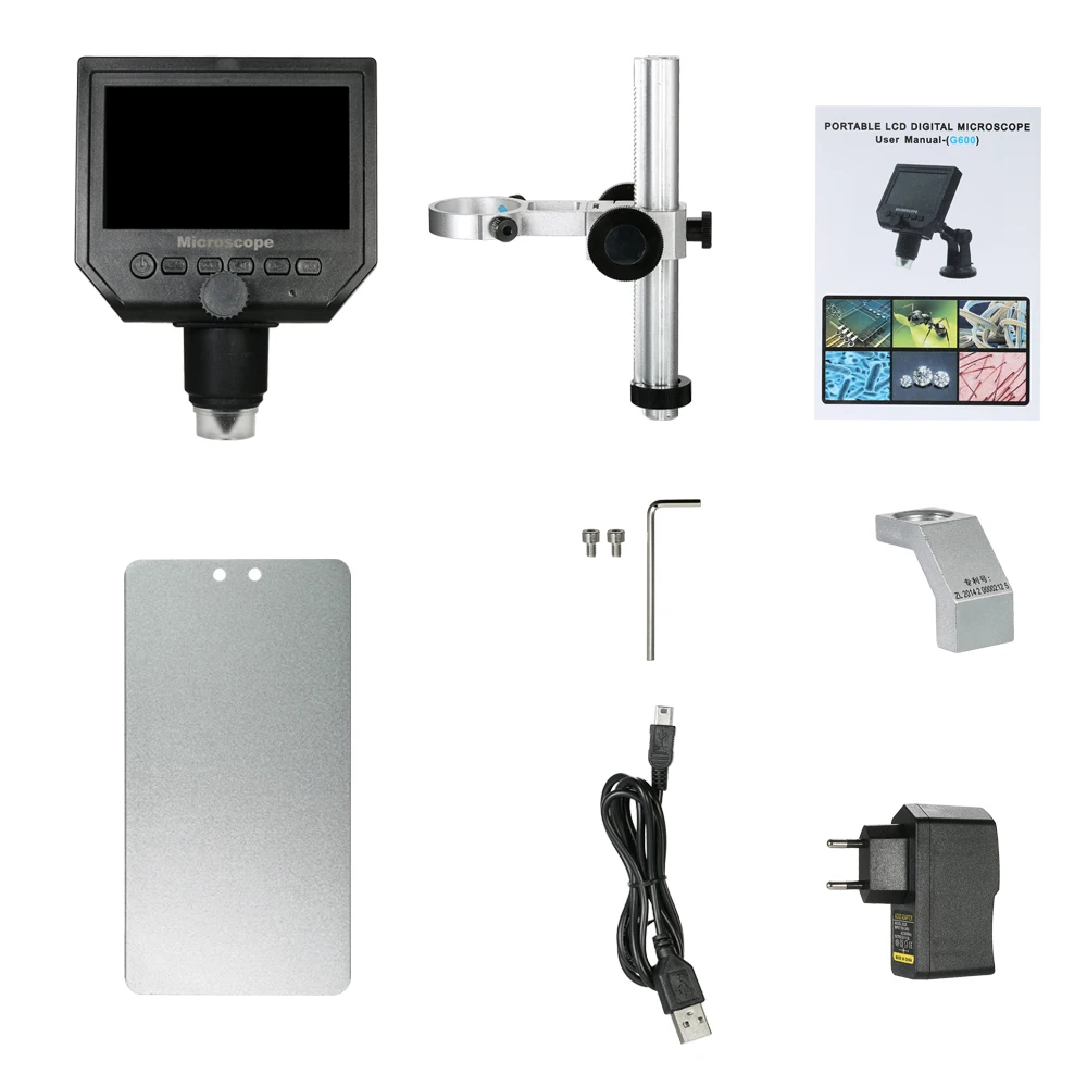 4,3 дюймов HD ЖК-дисплей дисплей электронный микроскоп с 600X увеличение, Регулируемая высокая яркость 8 светодиодов, 16 языков и переносных размеров, этот цифровой микроскоп поможет вам видеть и анализировать крошечные объекты в микроскопических деталях. Встроенный литиевый аккумулятор может непрерывно работать в течение 6 часов. Поставляется с металлическим держателем для поддержки микроскопа. Откройте двери микромира для вас.
