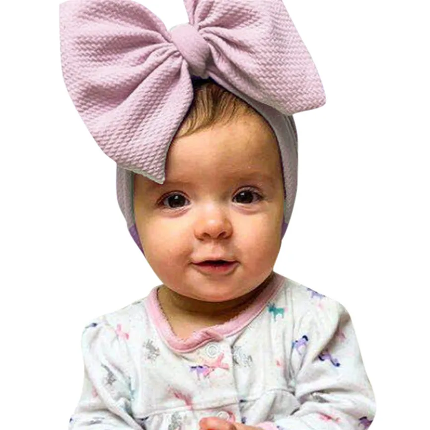 Милая шляпа унисекс для детей 0-6 месяцев, одноцветная эластичная шляпа с большим бантом