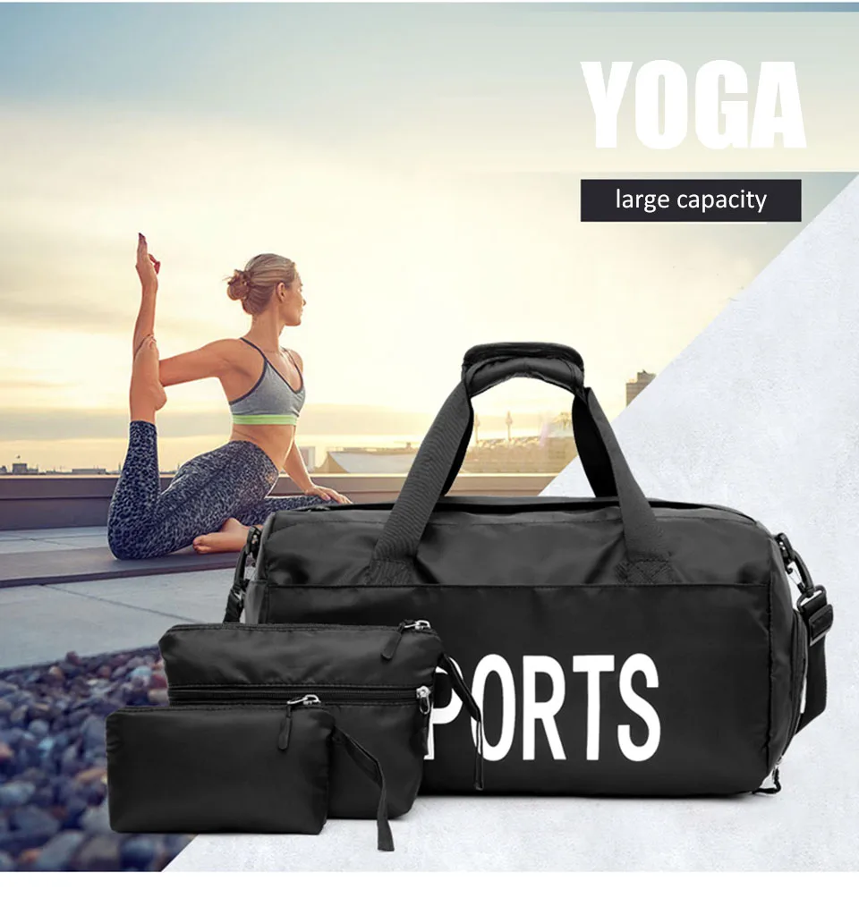 Количество: 3 шт./компл. для продажи Размер сумки: Сумка: 46х25х25 см Сумка для хранения: 19x8x15cm Маленькая сумка: 17x3x11cm Цвет: фиолетовый, черный, розовый, серый Материал: нейлон Стиль: Модный, повседневный Пол: Женщины, Дамы, женщины Застежка: молния Повод: тренажерный зал, путешествия, спорт, обучение