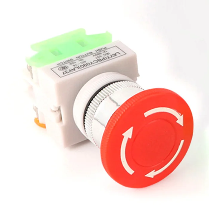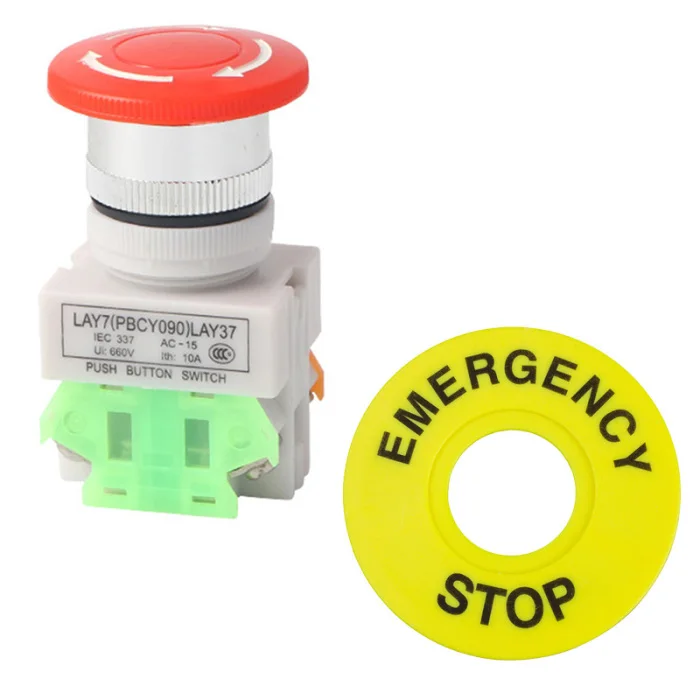 3. 4 клеммы, 22 мм монтажное отверстие, 1NO + 1NC Тип контакта, красный гриб Аварийная остановка блокировки кнопочный переключатель с желтым колпачком.