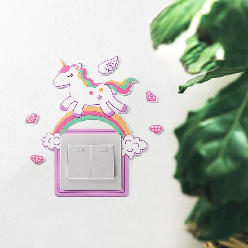 3D Наклейка на стену с изображением животного единорога фламинго, декор для гостиной, настенный силиконовый настенный выключатель, светильник, переключатель, розетка для спальни
