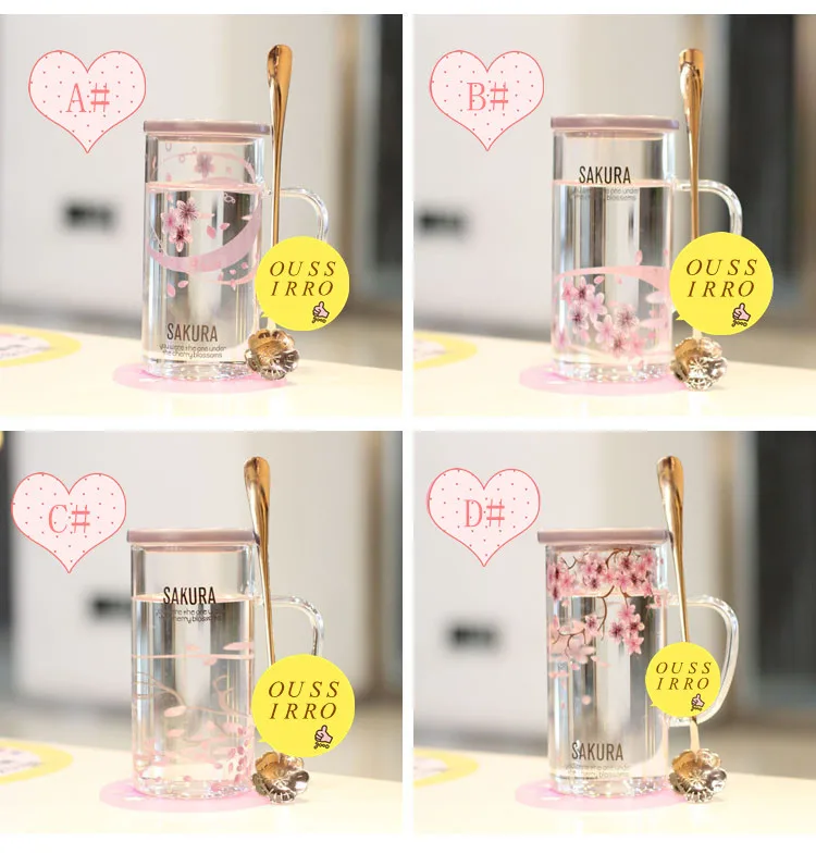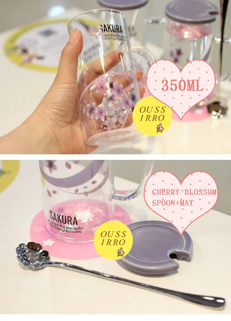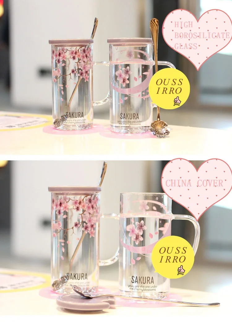 ULKNN, новинка, креативная Сакура, термостойкая стеклянная кружка с крышкой, с ложкой, чашка для молока, кофе, пара, свадьба, любовник, хорошие подарки