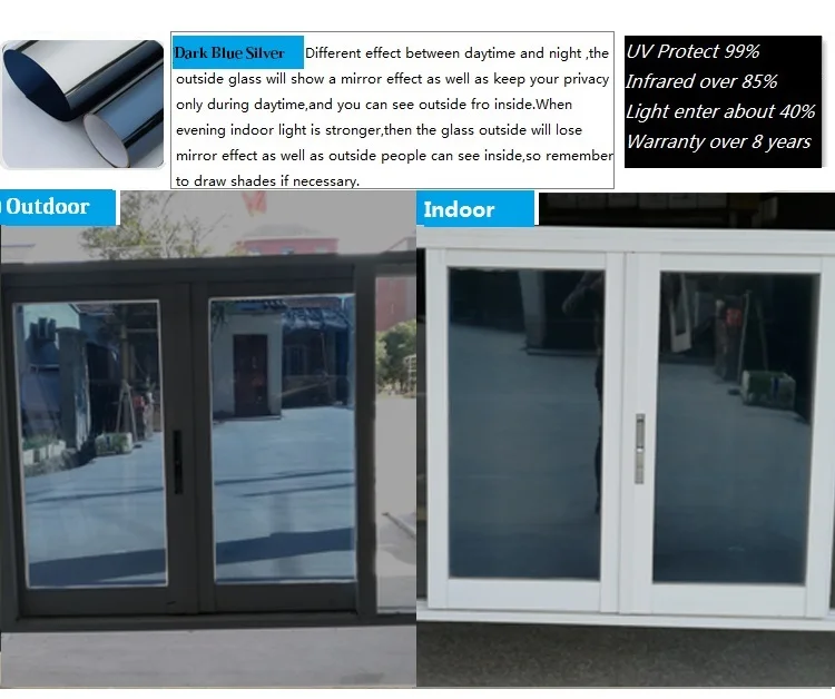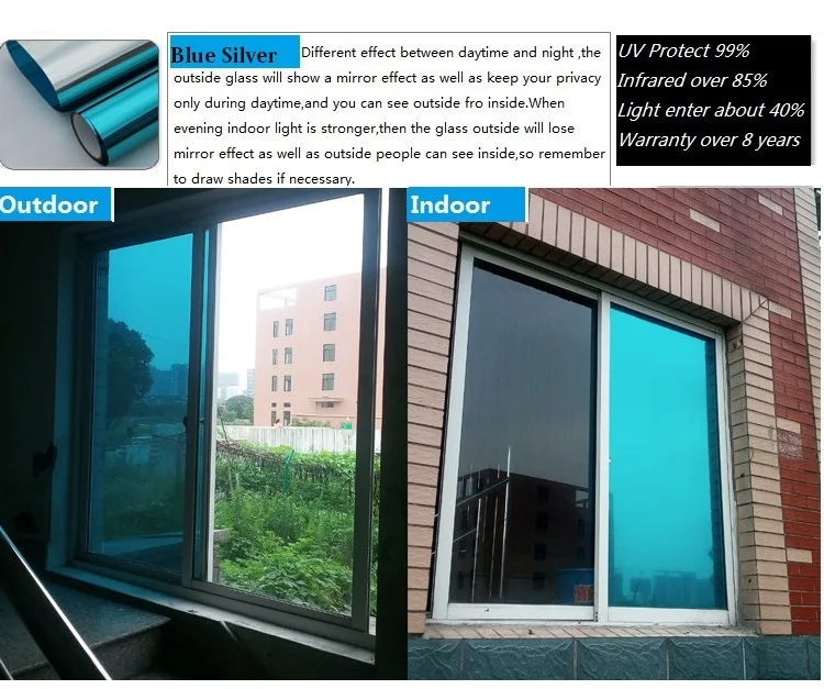 Купить декоративную пленку один из способов зеркальной серебряной оконной пленки серии являются высоко отражающие оконные пленки, которые улучшают дневную конфиденциальность. Если односторонняя зеркальная оконная пленка устанавливается на окно, она придает окну зеркальный отражающий вид на внешней стороне вашего здания. Если вы хотите конфиденциальность от нежелательных зрителей, пока вы все еще можете смотреть в окно и наслаждаться пейзажем, этот фильм будет соответствовать вашим потребностям. Тем не менее, есть важный факт, чтобы отметить о односторонней зеркальной пленке. Как следует из названия, зеркальный эффект работает только в одном направлении. Только боковая сторона с наиболее подверженным воздействию светильник будет иметь зеркальный вид, в то время как с другой стороны вы сможете увидеть. Например, в дневное время солнце делает внешнюю поверхность намного ярче, чем внутреннюю часть здания, поэтому наружная часть окна (Сторона, которая подвержена воздействию солнечных лучей) будет выглядеть как зеркало, давая прохожим обзор ничего, кроме их собственного отражения, В то время как люди на противоположной стороне будут иметь возможность просматривать. В отличие от этого, в ночное время Внутреннее освещение вашего дома или офиса позволит людям снаружи видеть внутри, В то время как вам будет труднее видеть, потому что внутренняя часть будет значительно ярче, чем снаружи. Это, к сожалению, неизбежно, так как прозрачный характер оконных пленок делает физически невозможным одностороннюю зеркальную пленку для работы как днем, так и ночью. Односторонняя зеркальная оконная пленка серебристого цвета как внутри, так и снаружи. Серебро использует свой низкий Видимый светильник, чтобы добавить к зеркальным эффектам. Пожалуйста, обратите внимание: 1. Это односторонняя зеркальная пленка. Сам по себе прозрачный, эффект конфиденциальности зависит от контрастности светильник 2. После того, как вы разместили дневное освещение в помещении, внешний вид очень четкий, открытый в основном не может видеть комнату 3. Вечер можно увидеть внутри и снаружи, не забудьте повесить шторы 4. Размер 30 см на 150 см, это образец или небольшое стекло, если вы хотите получить больший размер, пожалуйста, свяжитесь с нами 5. Из-за разницы между различными мониторами изображение может не отражать фактический цвет изделия. 6. Почта Китая обычном маленьком пакете Plus можно отследить только в Китае. Почта Китая зарегистрированной авиапочтой можно отследить до вашей двери. Мы рекомендуем.