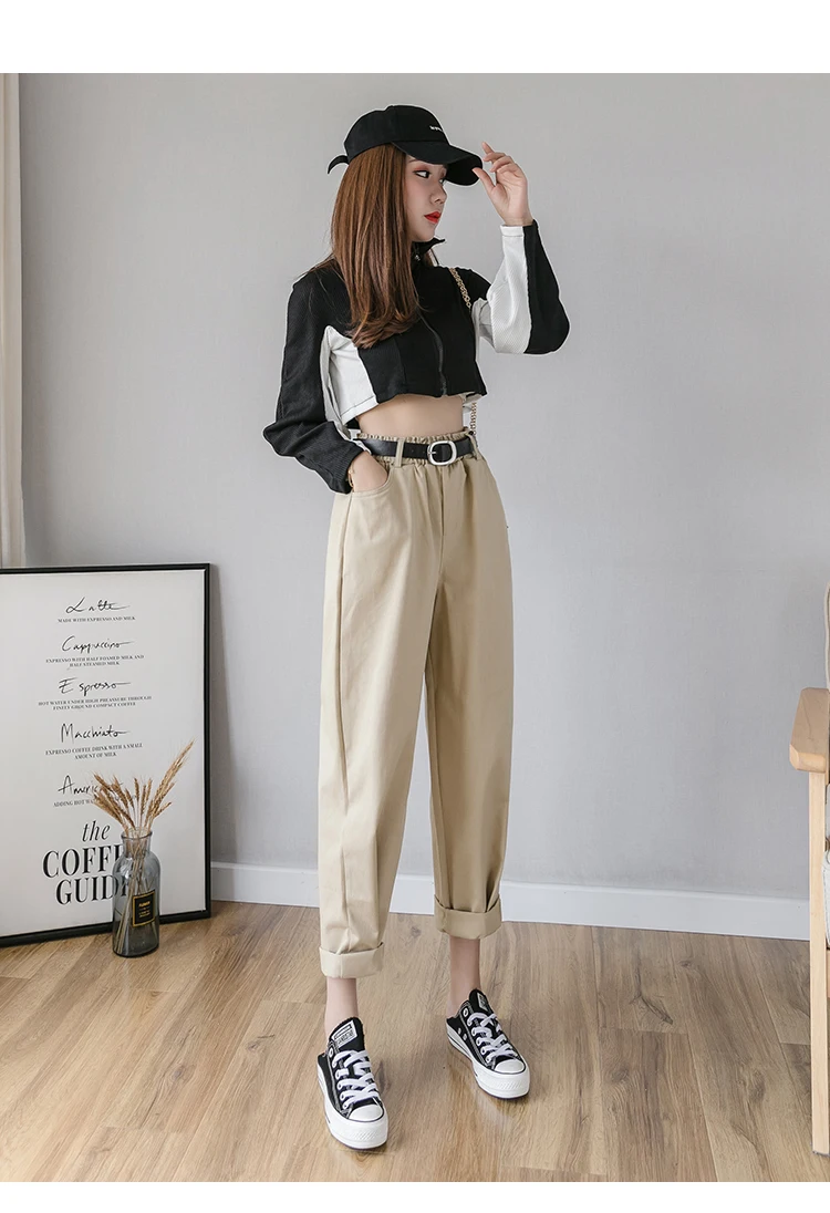 Женские брюки-карго TingYiLi, черные брюки цвета хаки с высокой талией на осень-зиму-весну
