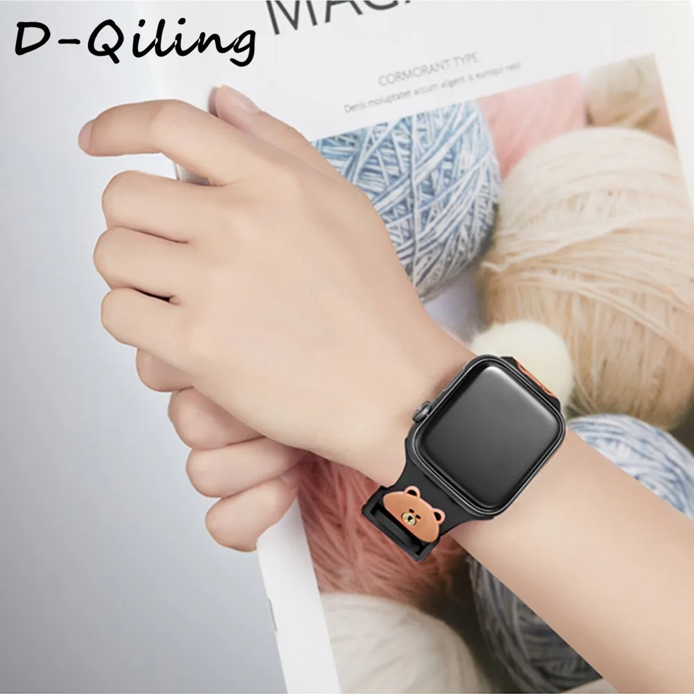 Силиконовый ремешок D-Qiling с Винни-пухом для Apple Watch, 38 мм, 42 мм, 40 мм, 44 мм, ремешок для часов iWatch 2, 3, 4, 5, Сменный ремешок