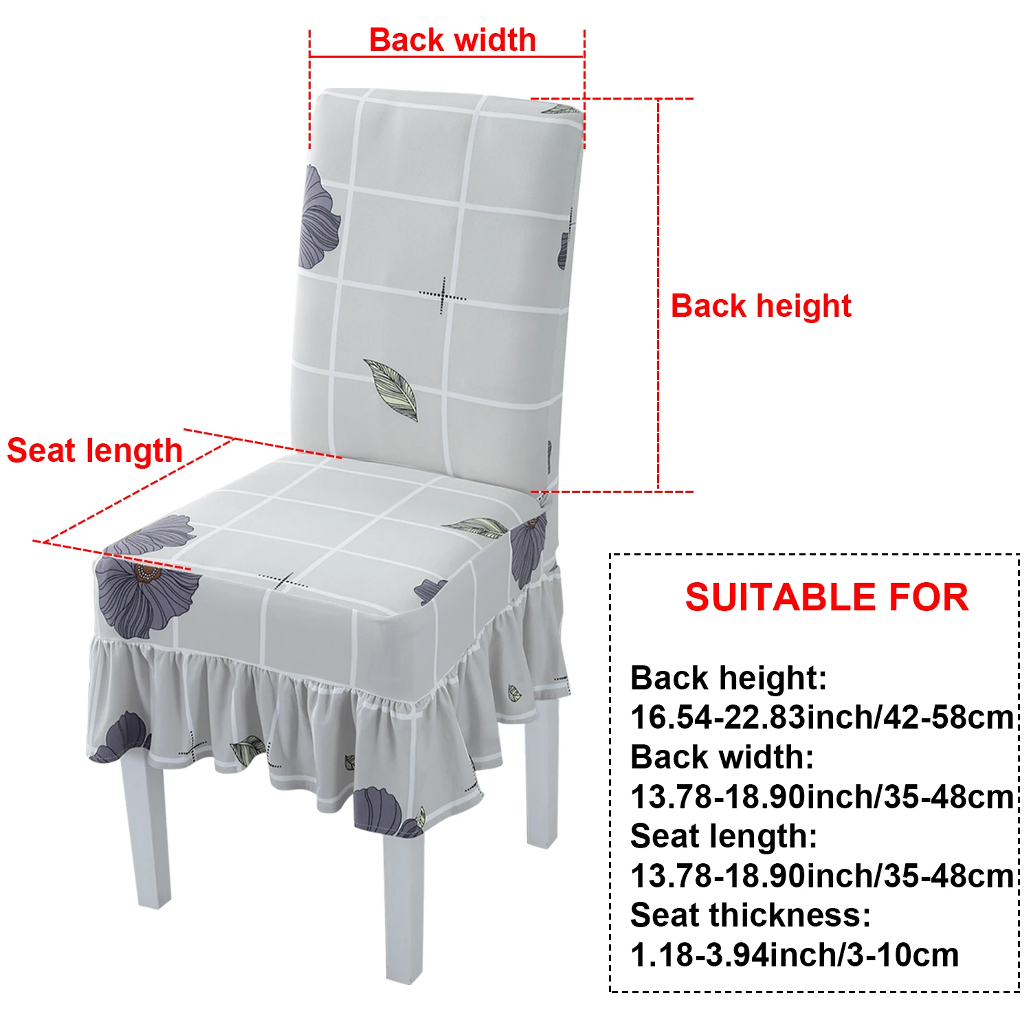 Подходит для большинства стульев: Высота спинки 16-23 дюйма; Ширина спинки: 14-19 дюймов; Длина сиденья: 14-19 дюймов; Ширина сиденья: 14-19 дюймов