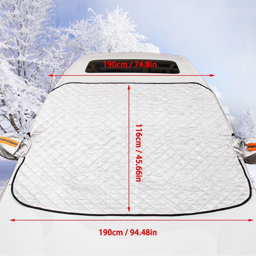 1. Полное покрытие: 94,5 "L x 46" W дюймов, наше всепогодное зимнее лобовое стекло покрывает холсты полностью вашего лобового стекла и подходит для большинства автомобилей, грузовиков, фургонов и внедорожников.