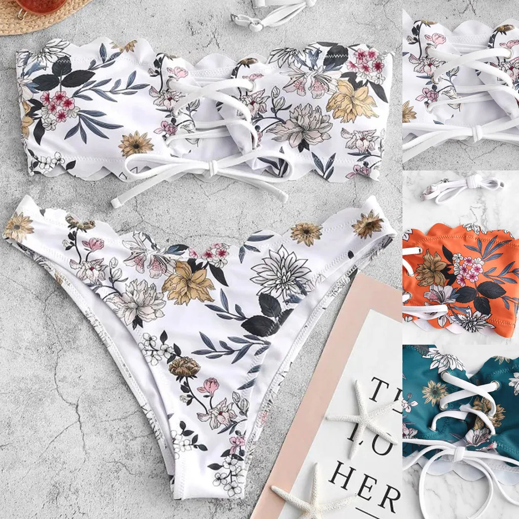 Новинка 2021 женское бикини с листьями пуш-ап купальник-бандо женская пляжная