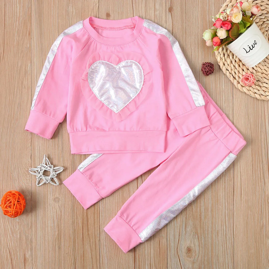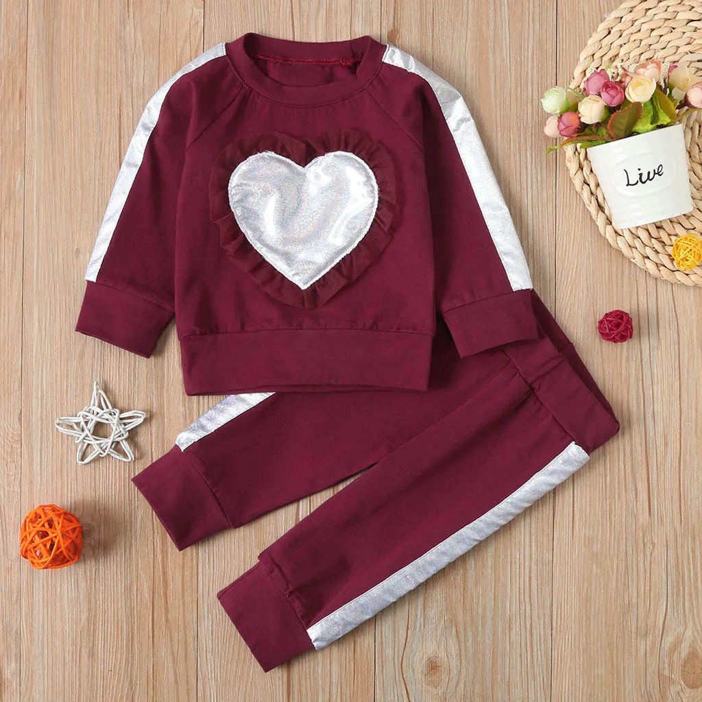 Комплект из 2 предметов для новорожденных и маленьких девочек; Толстовка с оборками и сердечками; Топы и штаны; Комплекты одежды