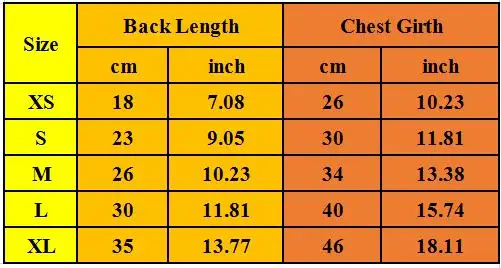 5. Если размеры вашей собаки падают между двумя размерами, пожалуйста, выберите больший размер.