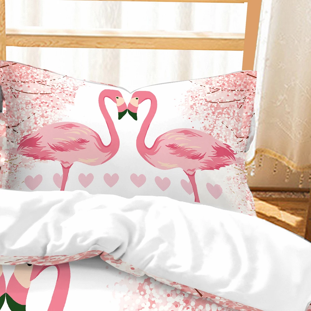 Фламинго розовый Постельное белье с цветочным принтом для девочек, комплект с пододеяльником, наволочками, Комплект постельного белья для очень больших и комплект постельного белья 2/3 pcs тропические растения постельное белье домашний текстиль