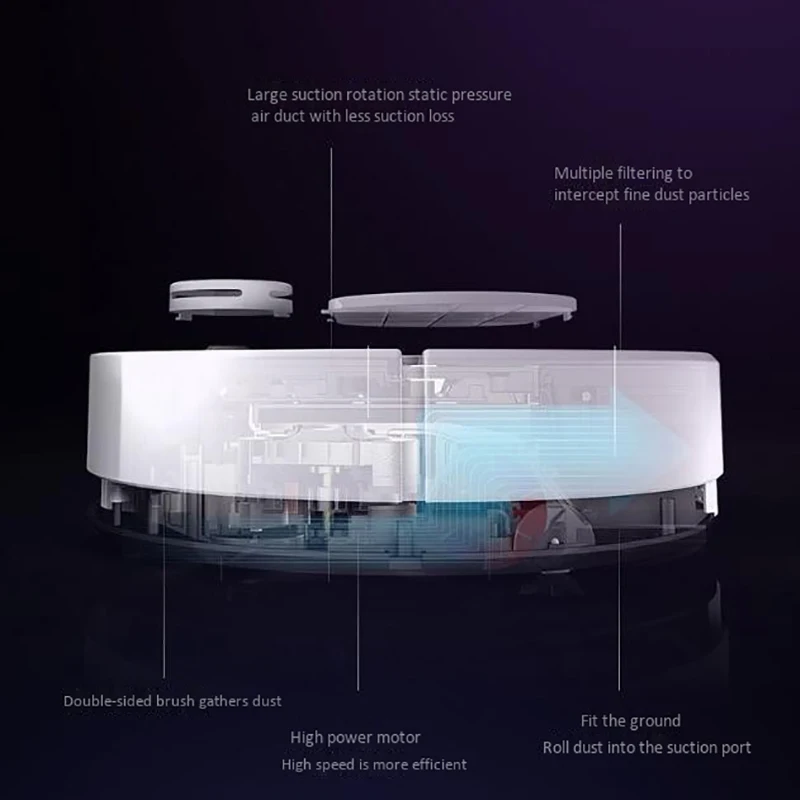 Когда он обнаруживает препятствие, Он поворачивается и полагается на дно, чтобы поглощать пыль, пыль, собачья шерсть и шерсть пола.