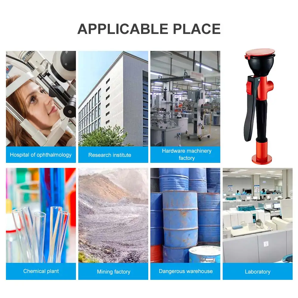 Product Name: Single-Head Eye Wash Product material: Copper Handle material: pp material Base: Alloy Hose: explosion-proof hose Surface treatment: epoxy coating Scope of application: laboratory, medical Product features: The soft foam-type water flow of the flushing nozzle, which improves the cleaning efficiency by 50% compared with ordinary eye-washing nozzles.Scope of application: Suitable for nuclear energy, petroleum, chemical, machinery manufacturing, automobile ship building, casting, painting, printing and dyeing, medical and other industries