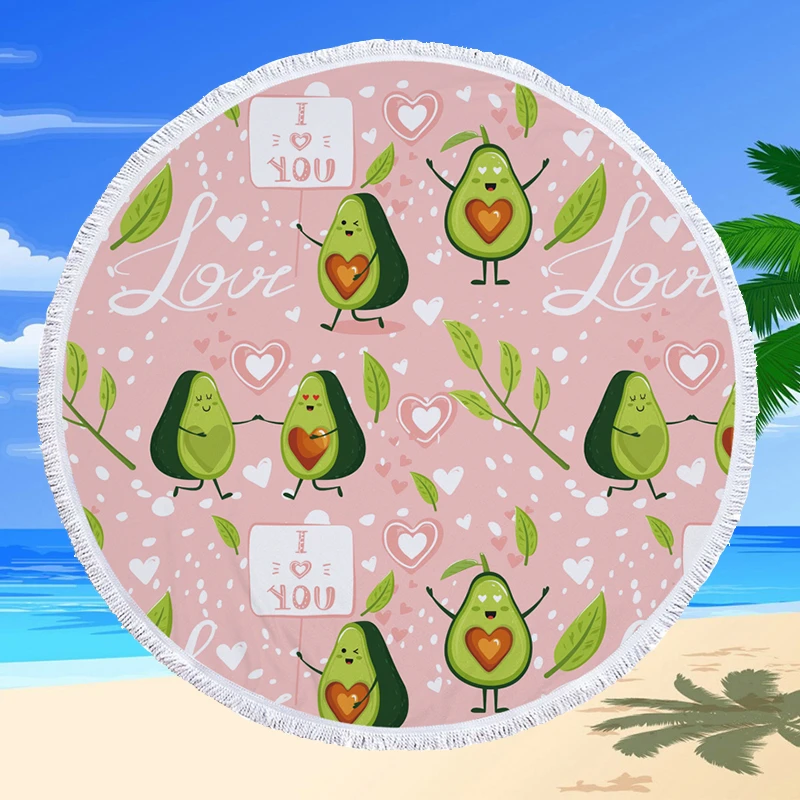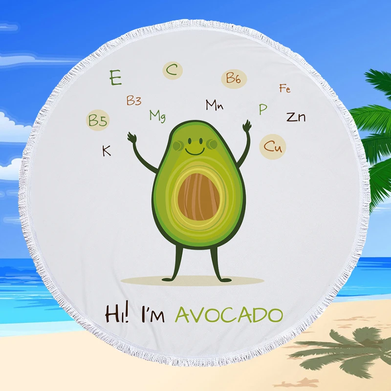 Мультфильм дизайн Авокадо печатных круглые пляжные полотенца кисточка пляжное полотенце для купания микрофибра йога Мат Открытый путешествия Пикник коврик