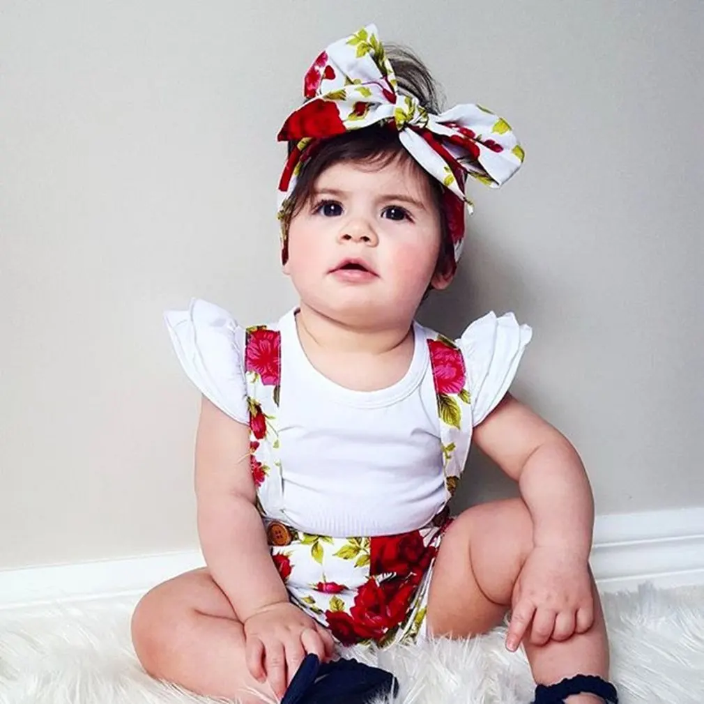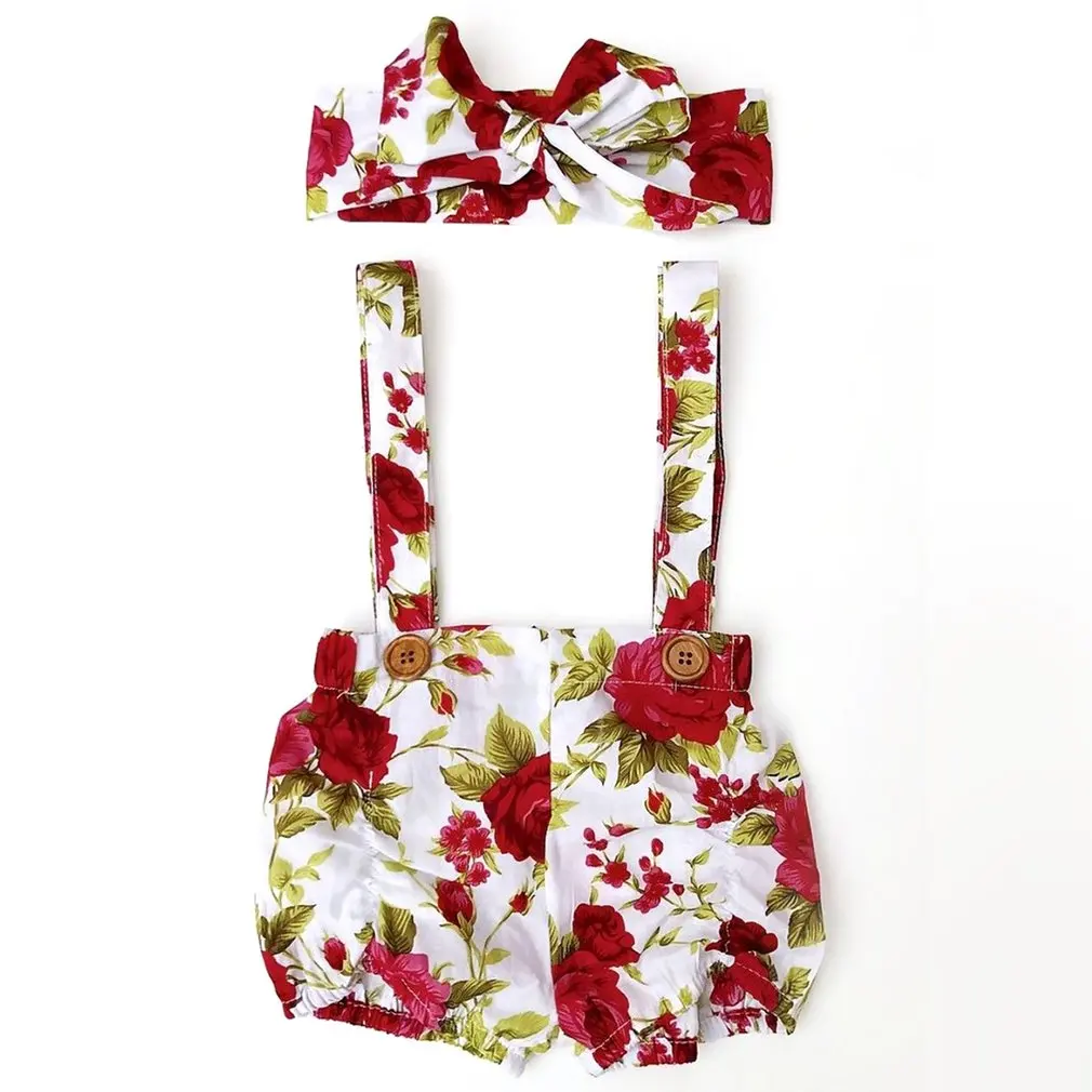 2 шт./компл. модные Мода шорты на подтяжках с съемный плечевой ремень + повязка на голову с сладкий прекрасный Цветочный принт для девочек