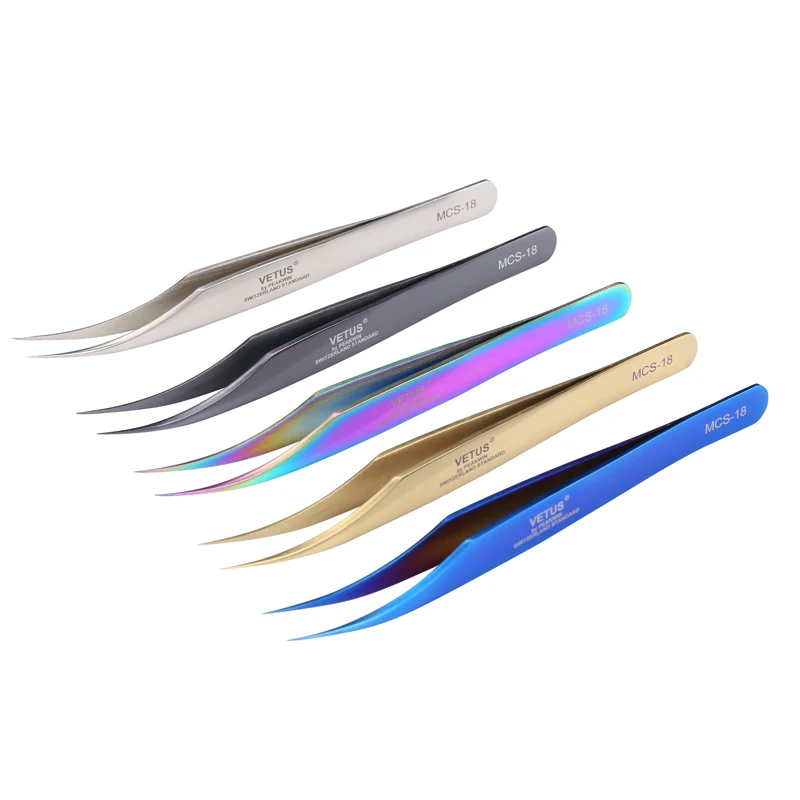 Vetus MCS-18 Электроника промышленные яркие пинцеты Изогнутый наконечник высокая твердость точность нержавеющая сталь Pinça инструмент для ремонта телефона