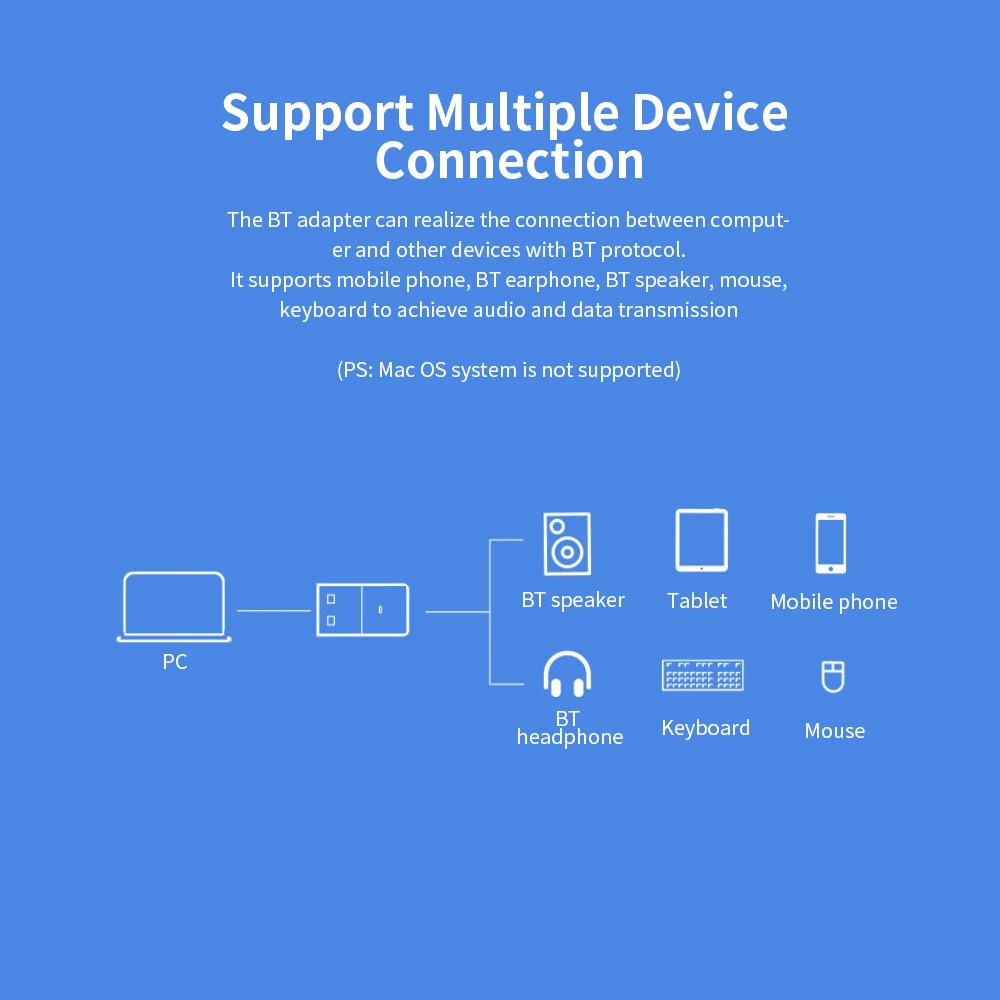 Этот адаптер BT оснащен интерфейсом USB2.0 для обработки данных и аудио-взаимодействия между ПК и различными устройствами BT. Принять стандартный оригинальный чип CSR8510, полностью соответствует технической спецификации BT 4,0, расстояние передачи до 20 м. Стабильный и сильный сигнал, двойной режим, чрезвычайно низкое энергопотребление.