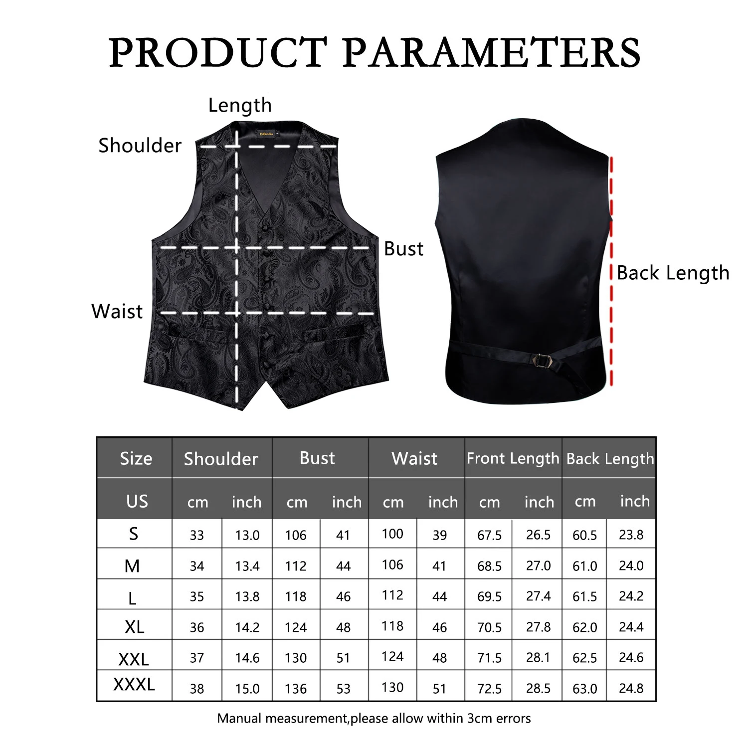 Примечание:Пожалуйста, выберите размер, ознакомившись с нашей таблицей размеров, и вы просто хотите получить подходящий жилет.