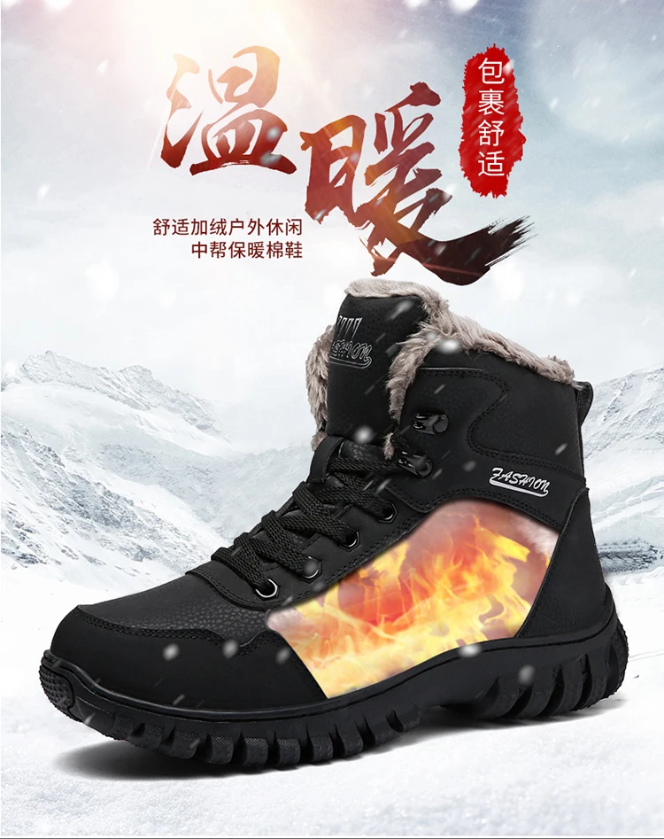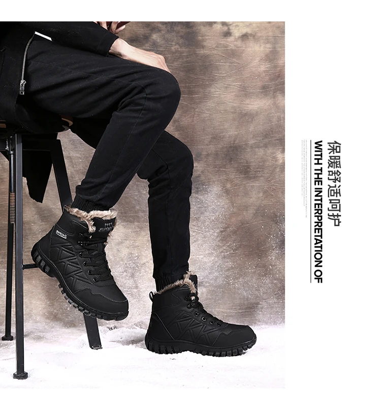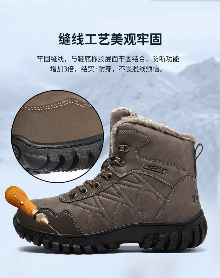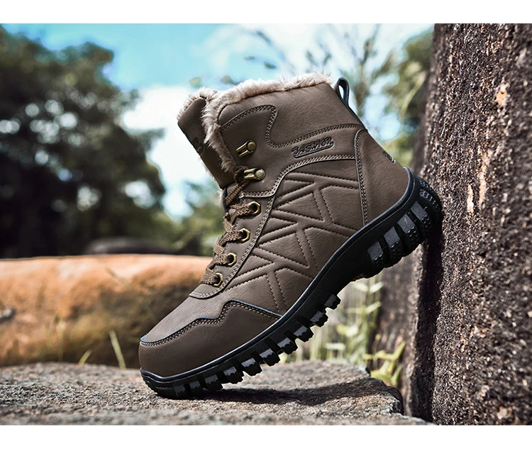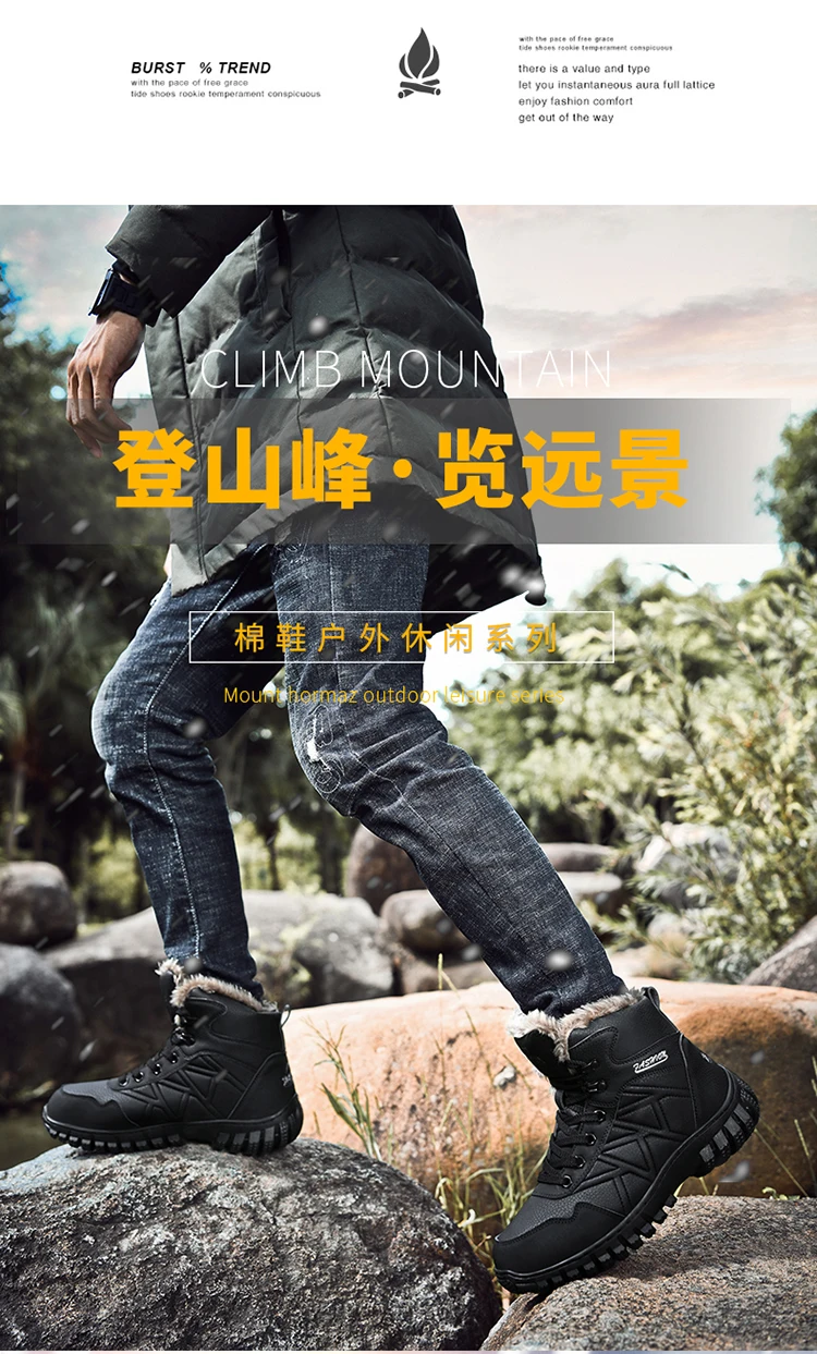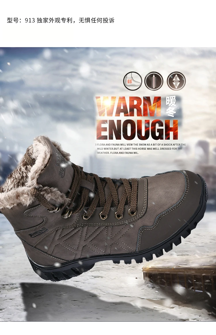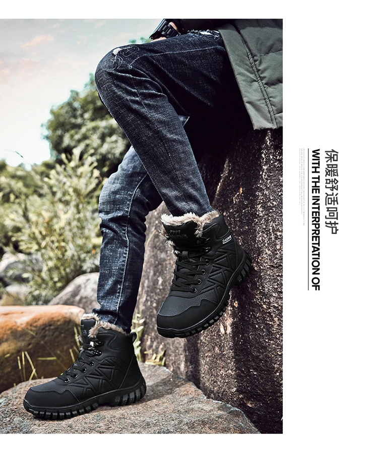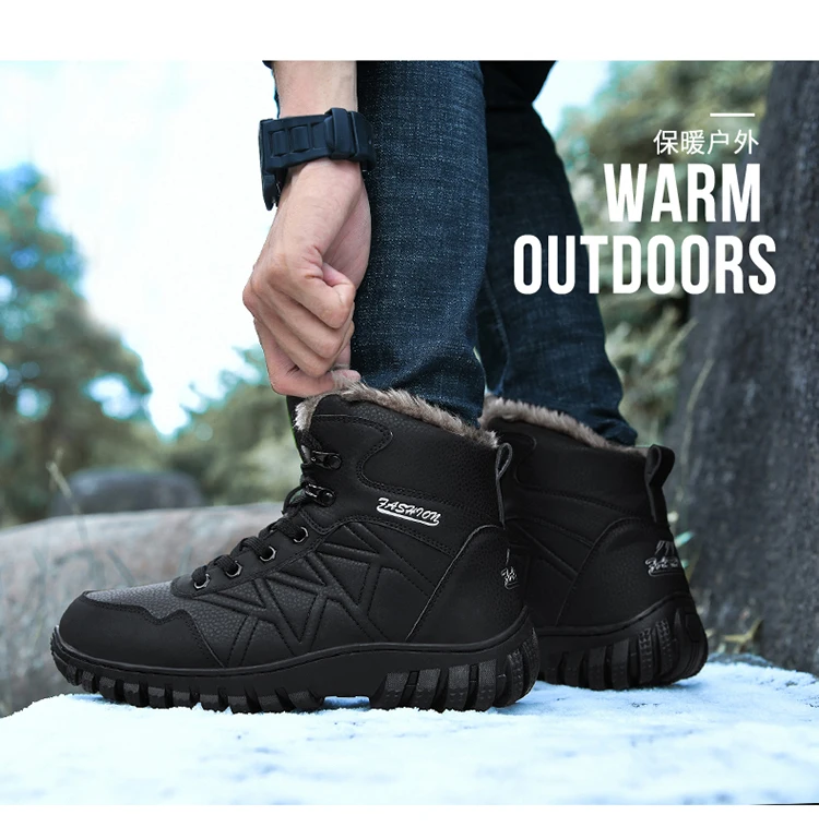 Зимняя уличная спортивная туристическая обувь для мужчин, кожаная альпинистская горная Треккинговая обувь, плюшевые зимние прогулочные ботинки, Нескользящие кроссовки для мужчин 48 Верх: кожа Подошва: резина Размер: 39-48