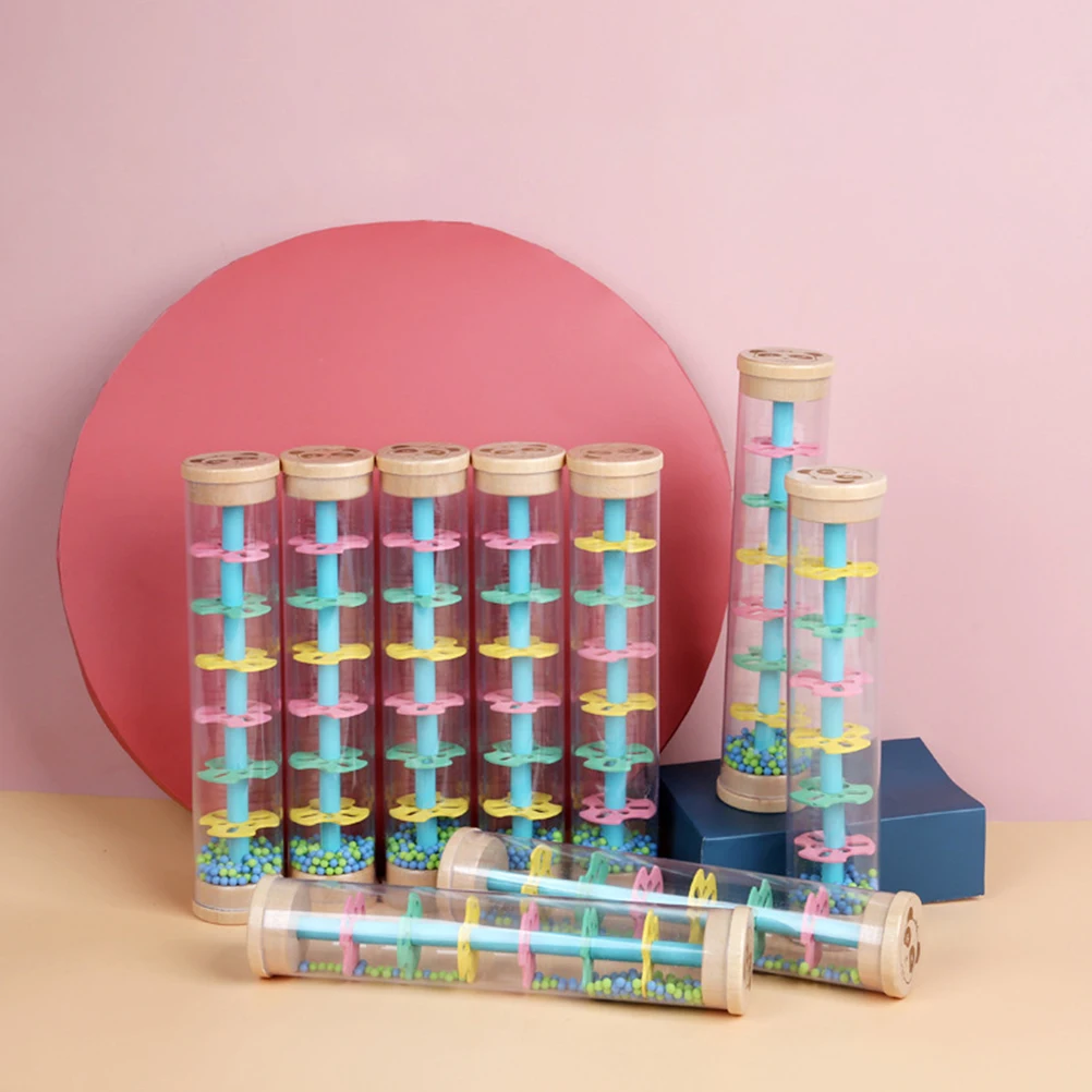 Наполненный множеством бусин, создает различные звуки в качестве музыкального инструмента для создания дождя, встряхивая, поворачивая или катая.
