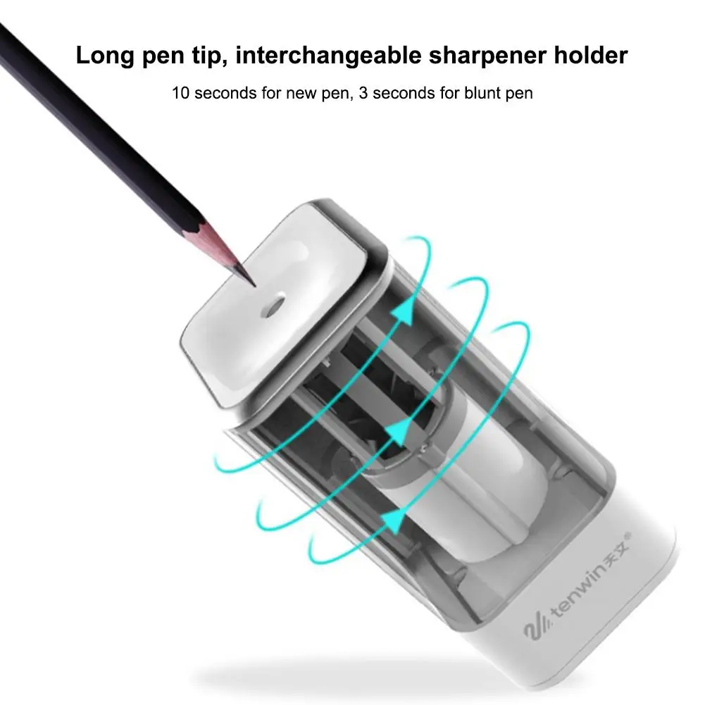 4. Легко чистить: точилка легко чистится и может держать много стружки. Точильный камень питается от сети переменного тока адаптер, помогая вам заточить карандаш более 3000 раз.
