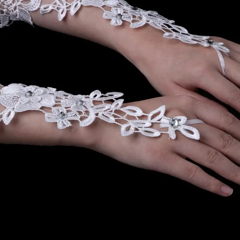 1 * пара стразы украшен пальцев кружева свадебные перчатки для Свадебная вечеринка (белый)