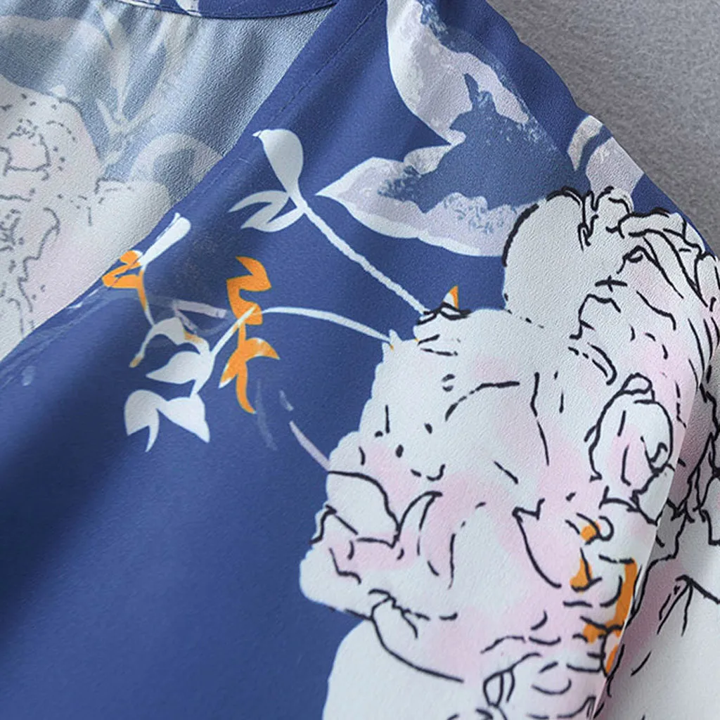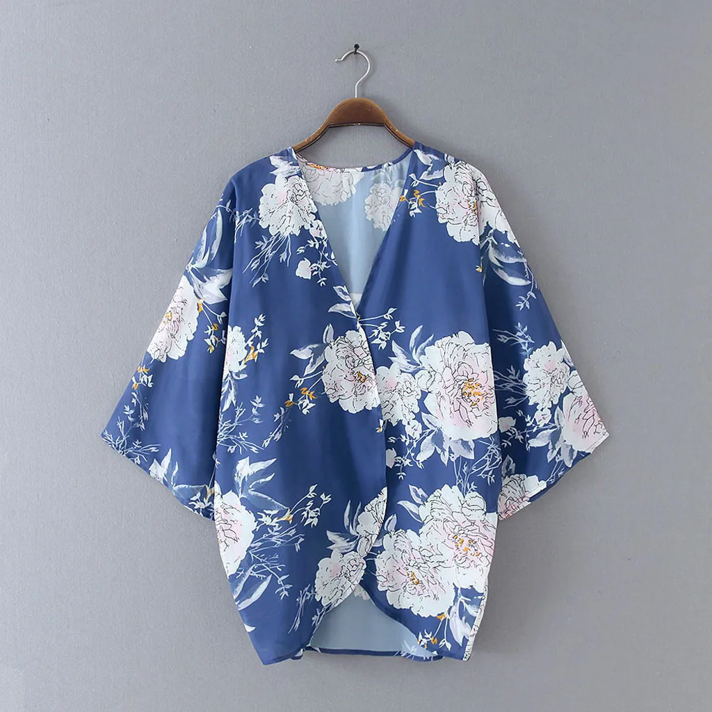 Модный женский свободный кардиган с расклешенными рукавами и цветочным принтом