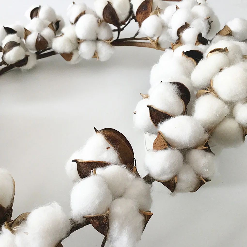 Этот Рождественский хлопковый венок является естественным и реалистичным, вы можете согнуть хлопковую трещину, чтобы соответствовать вашим различным потребностям.
