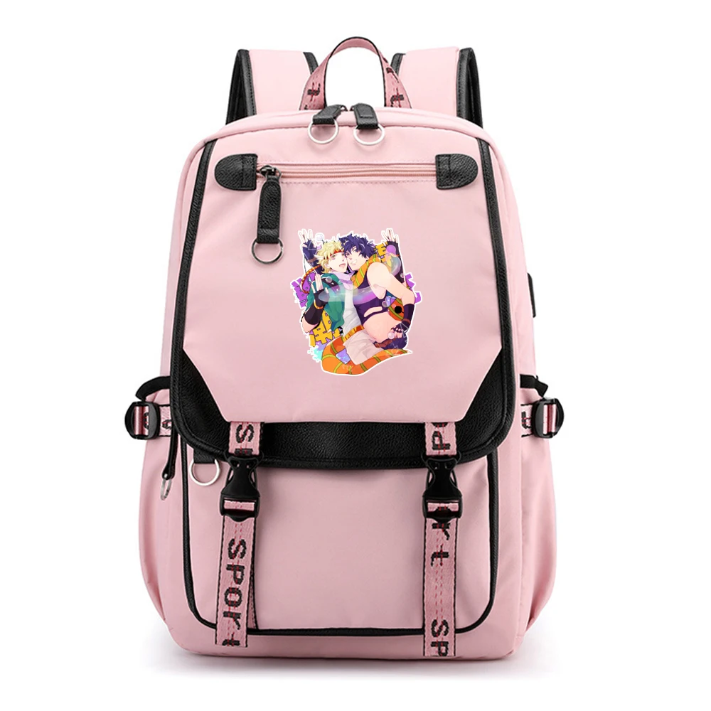Женский рюкзак-рюкзак для путешествий Jo's Bizarre Adventure, Розовый нейлоновый рюкзак для школы, большой дорожный рюкзак для ноутбука с usb-зарядкой