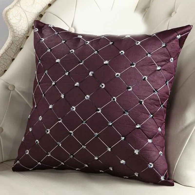 Декоративная подушка 43*43 см, однотонная клетчатая вышитая подушка, сетчатый чехол для дома