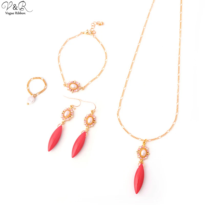 Набор ювелирных изделий из стекла/акрила/натурального камня, набор украшений из ожерелья, сережек, браслета и кольца, новый дизайн 2020