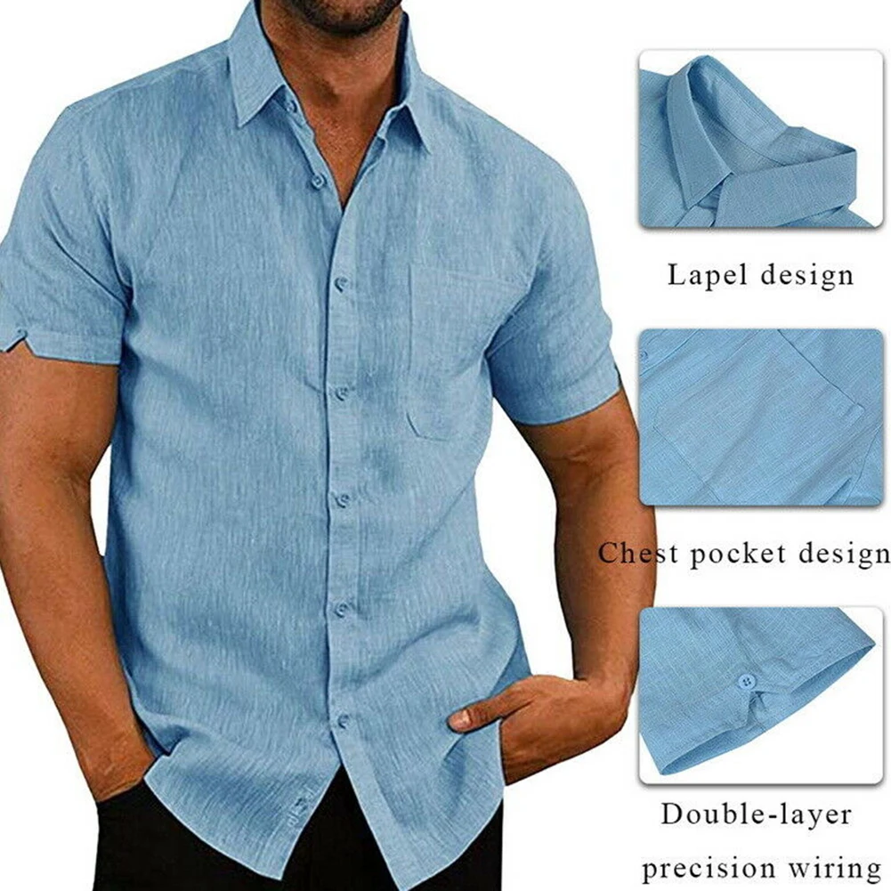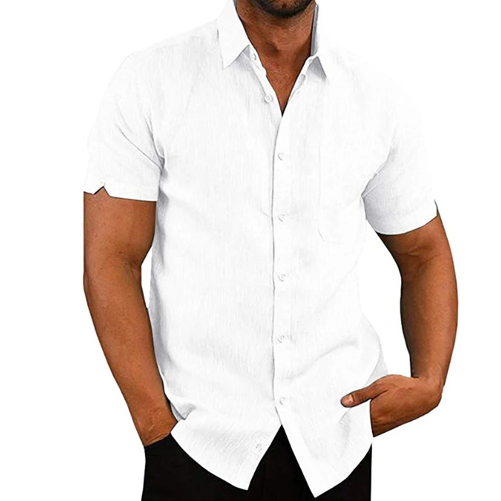 Summer Casual Men Solid Color Turn Down Collar Short Sleeve Pockets Buttons Sliming Shirt