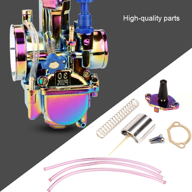 Технические характеристики: 100% абсолютно новый, никогда не монтируется, высокое качество Материал: Алюминий Цвет: Цвет Фул Размер PWK: 28 мм 30 мм 32 мм 34 мм Информация о продукте: как на картинке Пожалуйста, проверьте измерение перед покупкой. Размеры: 28 мм подходит для двигателя 75cc до 125cc