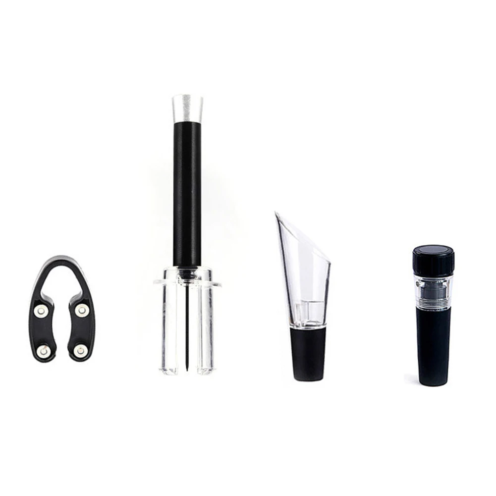 -Изготовлено из высококачественного АБС/алюминиевого материала, игловая поверхность винного открывателя обработана пищевой и устойчивой к коррозии. Пищевой силикон для вина.