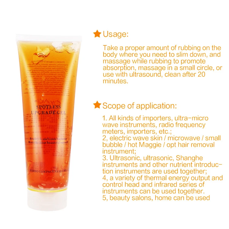 Как использовать:Возьмите необходимое количество трения на теле, где вам нужно похудеть, и массируйте во время трения, чтобы повысить поглощение, массаж в маленьком круге или использовать с ультразвуком, очистите через 20 минут.Область применения:1. Все виды импортеров, ультра-микро волновые инструменты, радиочастотные счетчики, импортеры и т. Д.;2. Электрическая волновая кожа/микроволновая печь/маленький пузырь/горячая Мэгги/opt инструмент для удаления волос;3. Ультразвуковые, ультразвуковые, shanghe инструменты и другие инструменты для введения питательных веществ используются вместе;4. Различные тепловые источники энергии и головки управления и indrared серии инструментов могут быть использованы вместе;5. Салоны красоты, дома могут быть использованы.