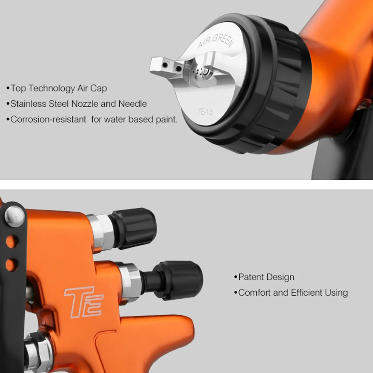 Этот воздушный пушка брызга нержавеющей насадка с 600 мл Ёмкость по изготовлению крышек для пластиковых стаканчиков, 1,3 мм сопло Размеры покраска автомобиля пистолет. Корпус кованого и прессованного пистолета компактен для предотвращения покраски прыжков, прочный и долговечный. Подходит для покраски автомобилей, распылителя специально для автомобилей, что очень легко и удобно в использовании.