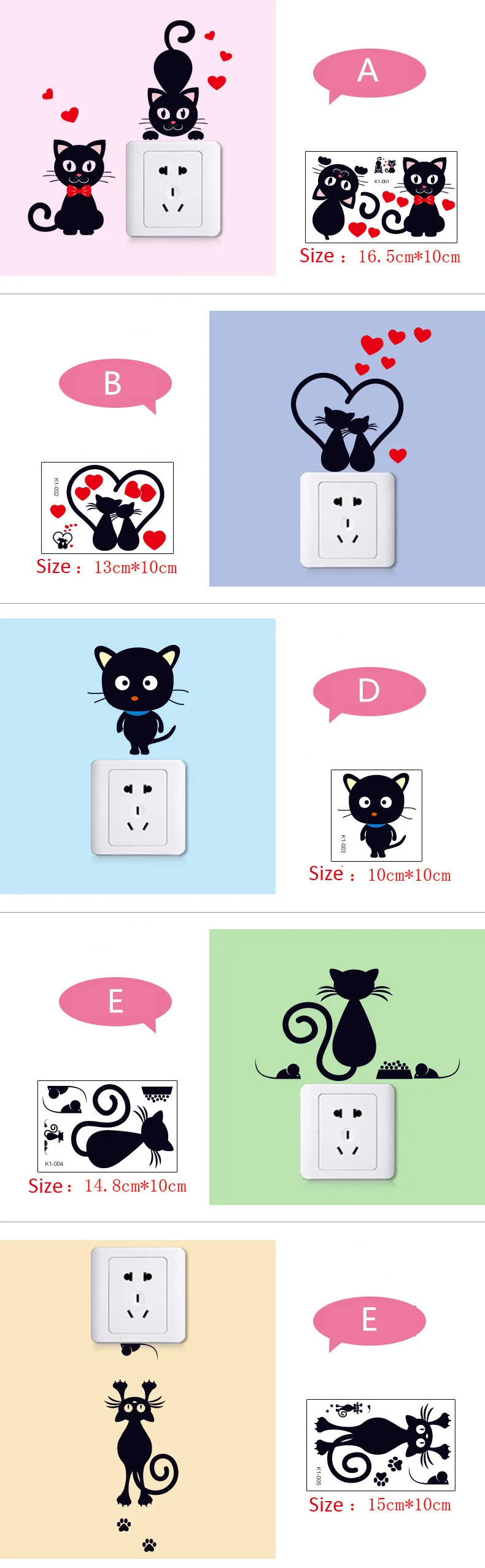 Домашний декор, наклейка для детской розетки, сделай сам, креативный Черный кот, любовь, мультфильм, Съемный переключатель, наклейка s, ПВХ, наклейка на стену, Виниловая наклейка