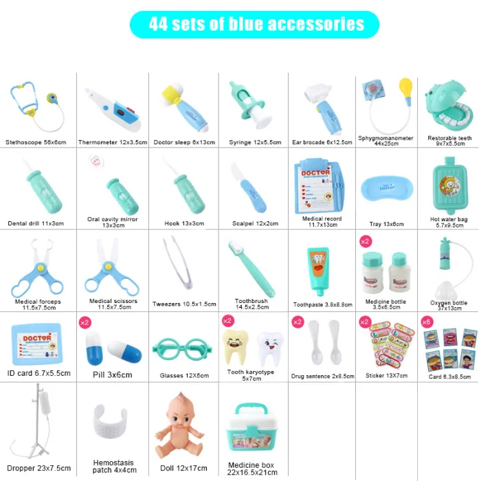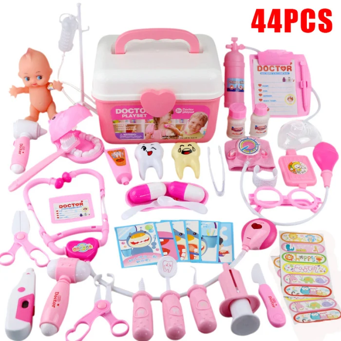 44 шт./компл. Набор детских игрушечных игрушек для ролевых игр, принадлежности для клиник с футляром для хранения FJ88