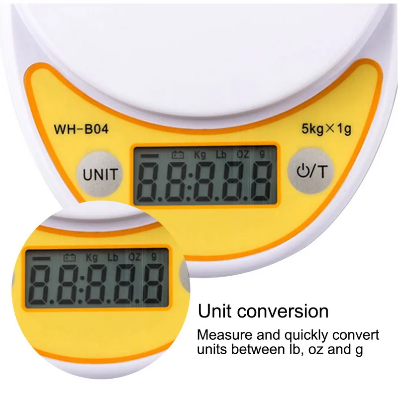 1. Precise measurement: Weigh up to 11 lb (5kg)/2lb(1kg); Graduation: 1kg/0.1g. 5kg/1g. The removable bowl can hold 790ml.