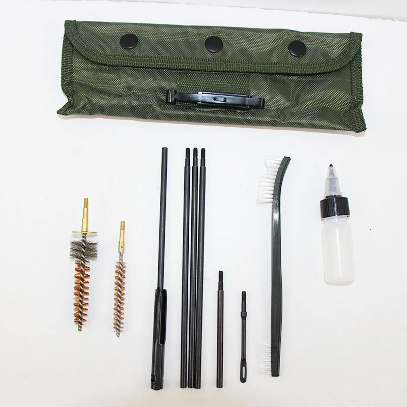 В этот набор входят латунная щетка a .22 cal, a .22 cal щетка для камеры, пластиковые бутылки для масла, 2 шт. патчей-держатель, 4 шт. винтовок и двухконцевая нейлоновая щетка для чистки.