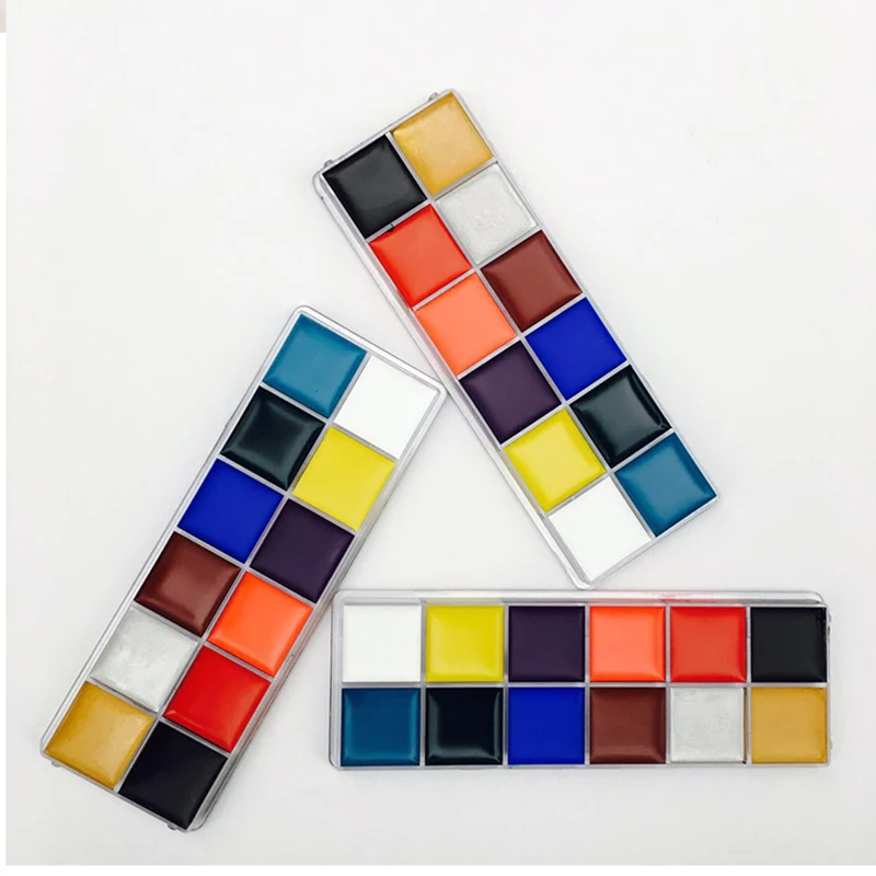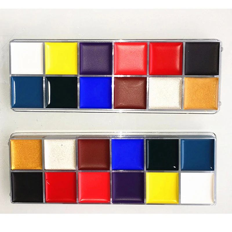 1 набор, 12 цветов, палитра краски для тела, флеш-тату, для лица, искусство, масляная краска, Хэллоуин, вечеринка, нарядное платье, красота, косметика, инструмент для макияжа